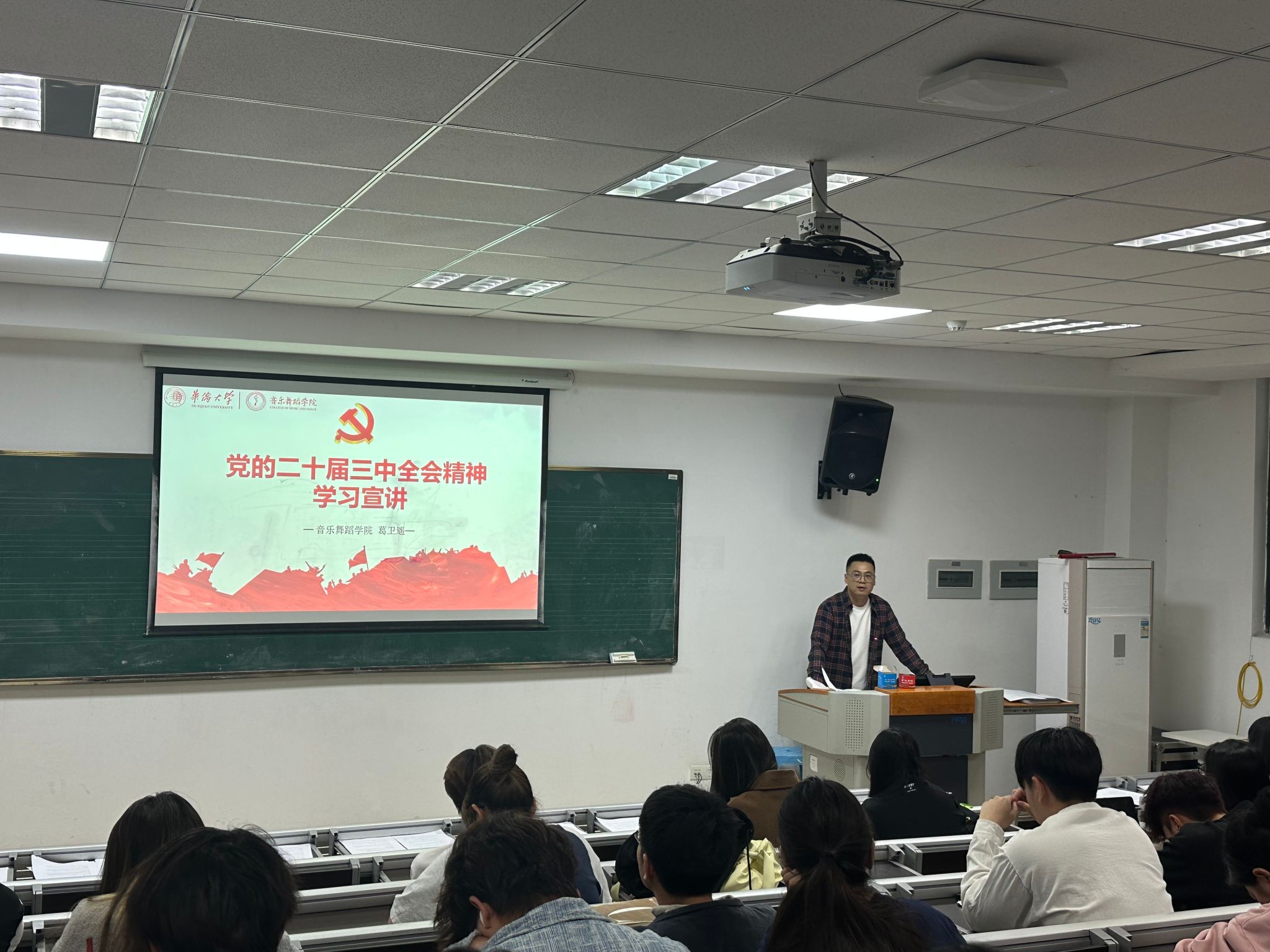 葛卫遥从历届党的三中全会召开时间和全会主题讲起,深刻阐述了党的二十届三中全会召开的意义,葛卫遥指出党的二十届三中全会审议通过的《决定》包含了 300 多项改革举措,涉及经济建设、政治建设、文化建设、社会建设、生态文明建设等各个领域,以及国家安全、国防和军队改革、党的领导和党的建设等方面,希望广大境外生同学理解领会其中要以,更好学习中华优秀传统乐舞文化,自觉拥护祖国统一、拥护“一国两制”,为港澳长期繁荣稳定和实现祖国和平统一做贡献,努力成长为了解和热爱中华文化、中国友好、主动担当中外交流合作的文化使者。