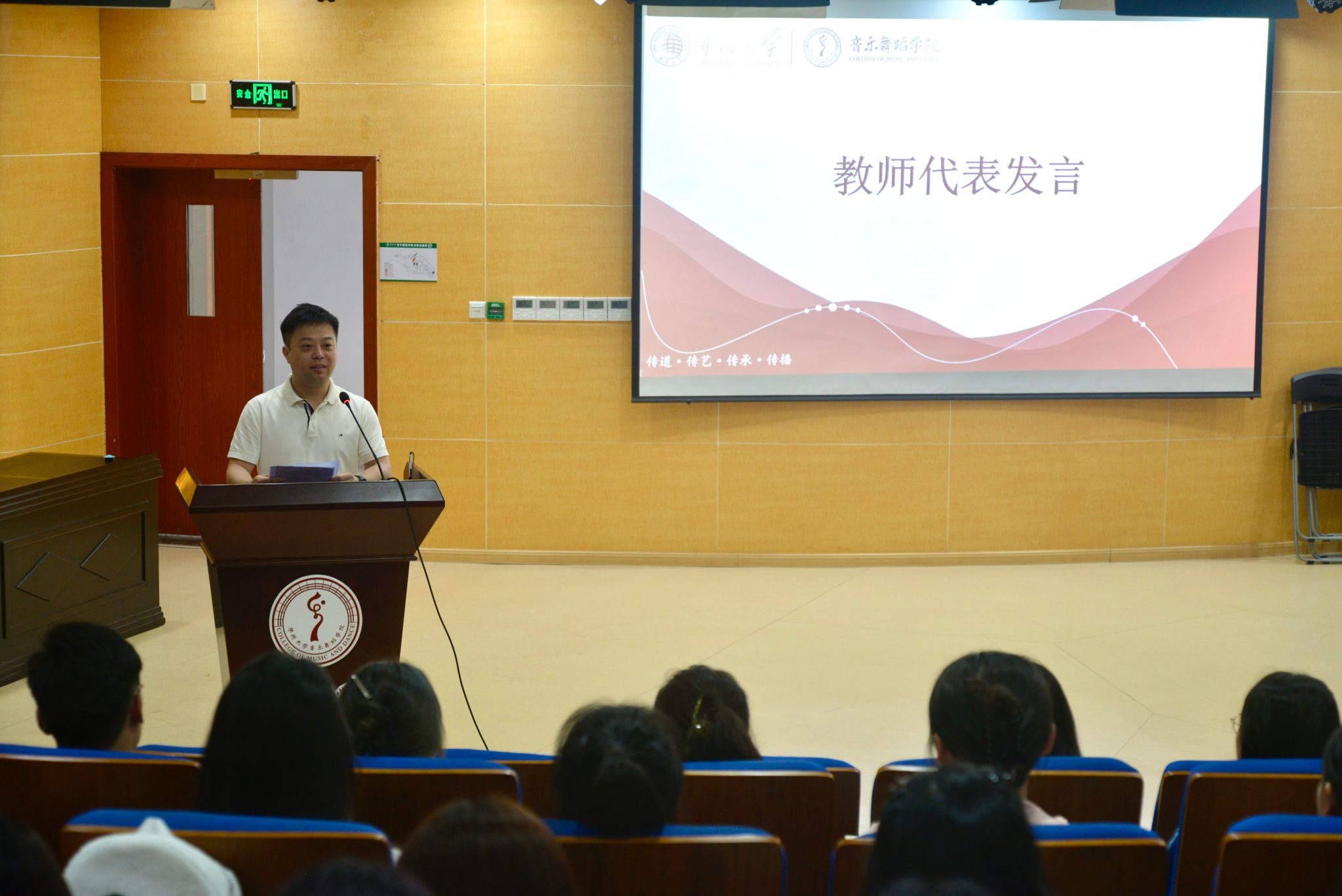 2024级音乐学2班班主任李立老师作为教师代表发言。他从热爱艺术、确立目标、时间管理、勤学苦练、文化自信、勇于创新、身心健康、享受过程等8个方面给员工提出宝贵的建议,鼓励同学们探索艺术的无限可能,培养自己的创造力和审美能力。