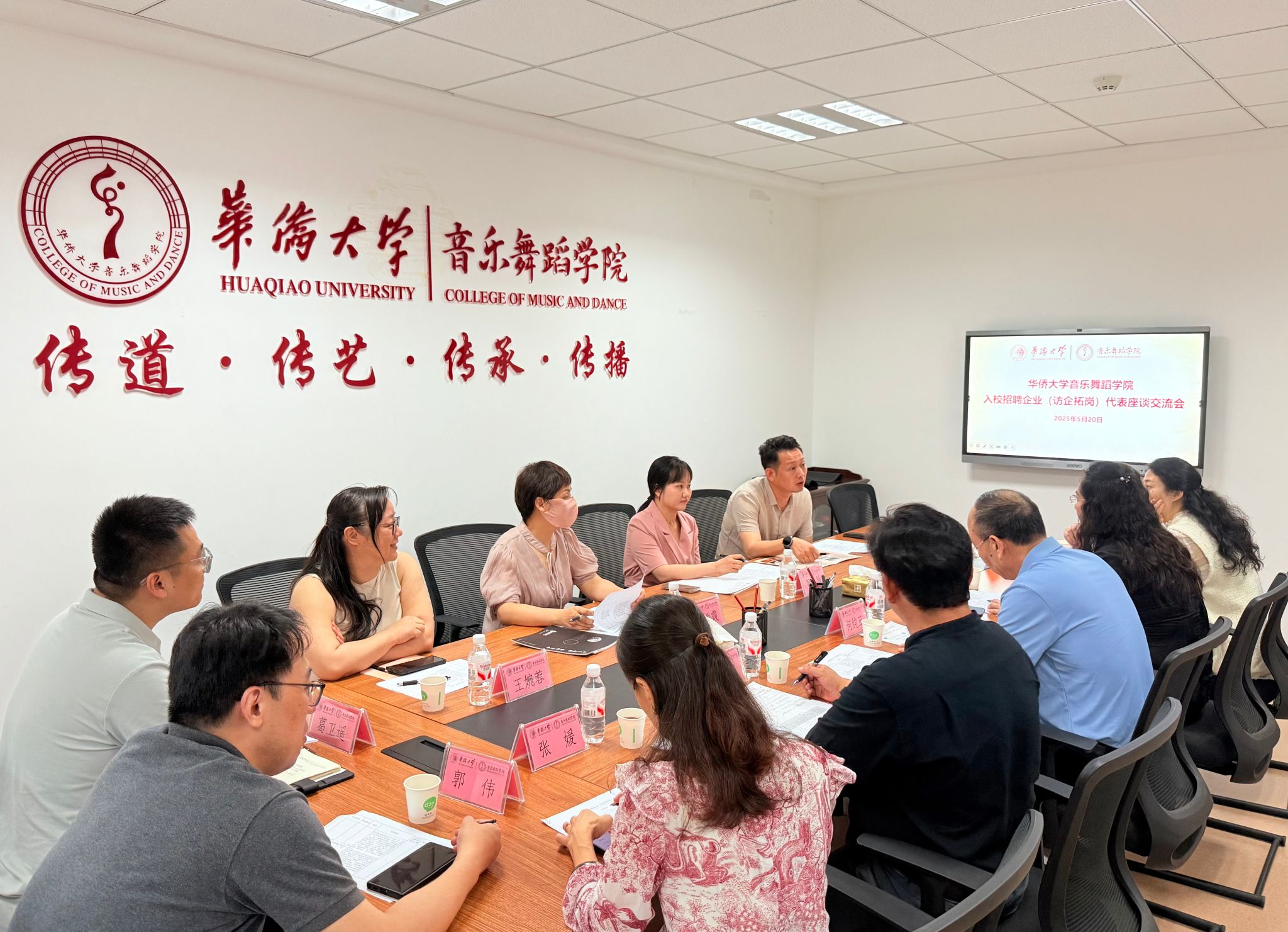 为深入贯彻落实教育部“访企拓岗促就业”专项行动,深化校企合作,拓宽毕业生就业渠道,5月20日下午,公司在李碧葱音乐舞蹈大楼203会议室举办了“入校招聘企业代表座谈交流会”。公司党委副书记、纪委书记何纯正,音乐舞蹈公司党委书记李振跃、经理何丽丽、副经理杨曦婷、张媛等校方代表,以及来自厦门市四家知名企业的代表共同参加了此次座谈会。