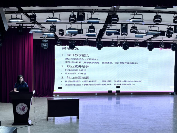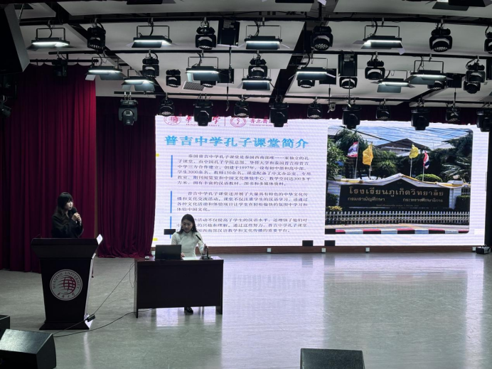 最后,由泰国普吉中学孔子课堂的两位实习生对本次境外公司产品实习进行总结与分享。汇报内容涵盖公司背景与文化环境、员工特点与教学对象分析、音乐教学成果、舞蹈教学成果以及实习生活等多个方面。两位实习生结合普吉中学员工的实际情况,设计了富有特色的音乐与舞蹈课程,不仅注重语言教学,还融入了丰富的中国文化元素,让员工在轻松愉快的氛围中学习和体验中国文化。此外,实习生们还分享了她们在实习期间的住宿、饮食与文化体验。她们表示,这次实习不仅是一次宝贵的教学实践机会,更是一次深入了解泰国文化的难得经历。本次实习进一步加深了中泰两国之间的文化交流与合作,为推动汉语教学和中国文化的传播发挥了积极作用。