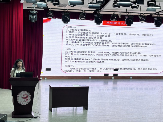 汇报会伊始,副经理杨曦婷首先就毕业实习的相关问题向大家做了介绍,对beet365极具特色的境外实习进行了全面而细致的说明。随后,音乐系刘悦老师重点针对音乐学专业员工的境内实习进行讲解,着重强调了实习意义以及在境内实习中需要注意的行为规范和教学纪律。舞蹈系主任闫萌萌老师则专门面向舞蹈学专业员工,系统阐释了如何结合专业特色设定实习目标,并对于舞蹈实习中常出现的问题进行明确的解答。