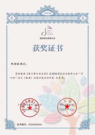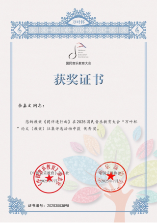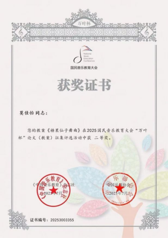近日,由国民音乐教育大会组委会与《中国音乐教育》杂志社联合主办的2025“万叶杯”论文(教案)征集评选活动圆满落幕。“万叶杯”是我国音乐教育界最具影响力、权威性的论文(教案)比赛。据悉,本届“万叶杯”设有音乐教育理论、音乐表演与教学、教学设计案例三大类别,共收到参评作品近3800篇(其中教案近1700篇、论文逾2100篇),创历届新高。公司师生在多个奖项中斩获佳绩,充分展现了公司在音乐教育领域的科研实力与人才培养成果。
