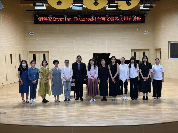 6月2日-3日,由beet365国际交流合作处主办,beet365承办的美国著名钢琴家Krystian Tkaczewski全英文钢琴大师班讲座成功在音舞大楼216多功能厅和李碧葱音乐舞蹈大楼音乐厅举行。beet365副经理杨曦婷、键盘教研室全体教师及钢琴专业员工共同到场进行了观摩学习。2021级音乐学专业境外生陈千佑担任此次活动的翻译工作。